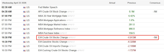 前值为减少91.3万桶,预期值减少100万桶,预期降幅较大。这与目前霍尔木兹海峡被封锁,欧洲和亚洲的部分国家只能购买美国石油,导致美国的商业原油库存下降有一定关系。