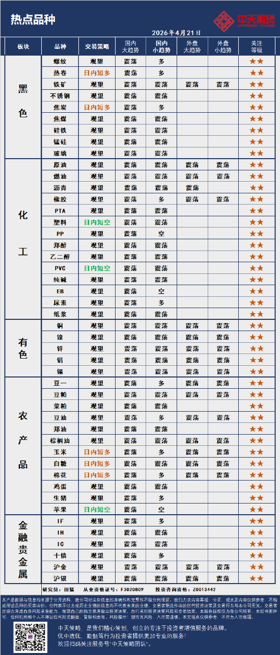 中天策略:4月21日市场分析