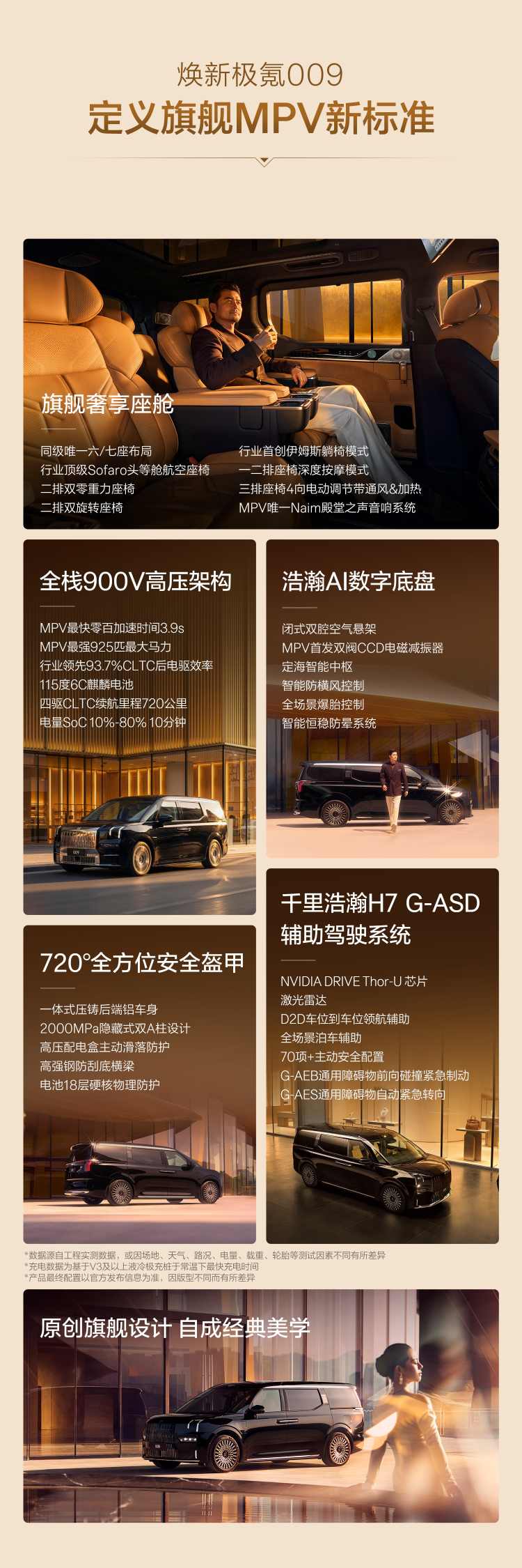 凤凰网科技讯 4月24日,极氪正式发布焕新009,推出七座Ultra版、七座Ultra+齐家版、六座Ultra+行政版三大版型,全系标配全栈900V高压架构,5月正式上市。