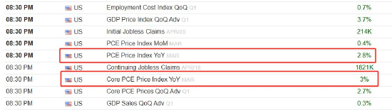 周四20点30分,美国将公布一系列经济数据,其中最受关注的是3月份PCE物价指数。由于三月份美国和伊朗之间的战争导致国际油价持续上涨,所以市场预期美国的PC物价指数会出现较大幅度的升高。