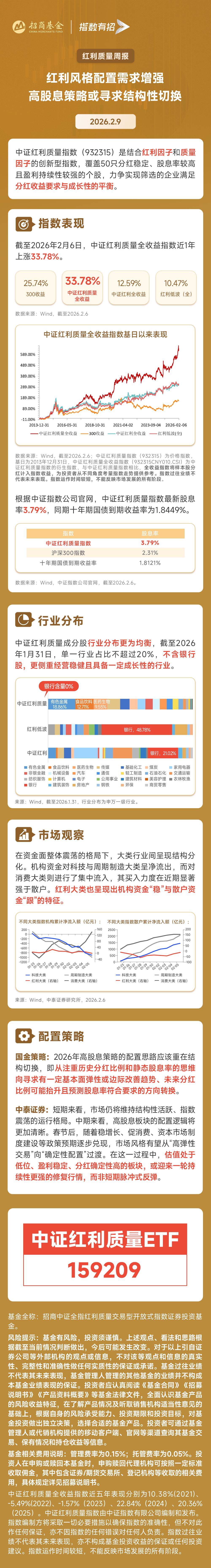 中证红利质量ETF(159209)跟踪指数中证红利质量指数(932315),是结合红利因子和质量因子的创新型指数,覆盖50只分红稳定、股息率较高且盈利持续性较强的个股。与传统红利指数过度集中于金融、能源等周期板块不同,红利质量策略能够覆盖并优选消费、医药、高端制造等更具长期稳定性的新经济领域龙头。这种均衡的结构使其更好地顺应了经济转型升级的趋势,增强了投资组合的韧性。